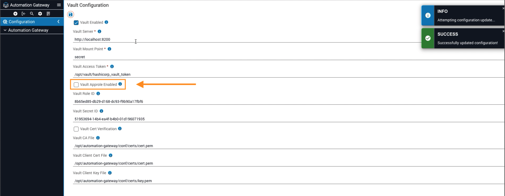 Select the Vault AppRole Auth checkbox on the IAG Vault configuration form.