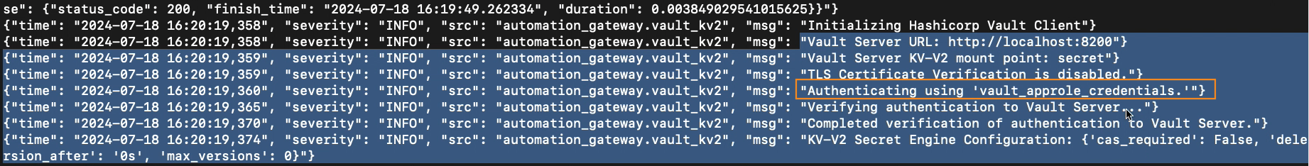 You can return to terminal to observe Authenticating using Vault AppRole credentials.