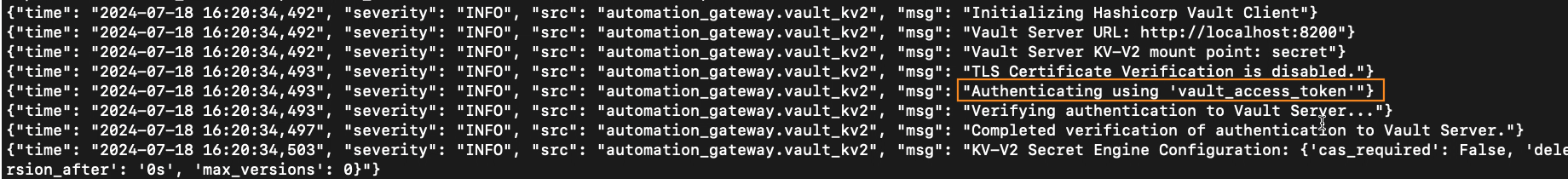 Beginning with the 4.3.0 release, Itential Automation Gateway (IAG) includes support for HashiCorp Vault AppRole authentication for retrieving secrets to validate requests from clients. This involves enabling approle and providing the role_id and secret_id. The role_id is analogous to a username while the secret_id is like a password.
