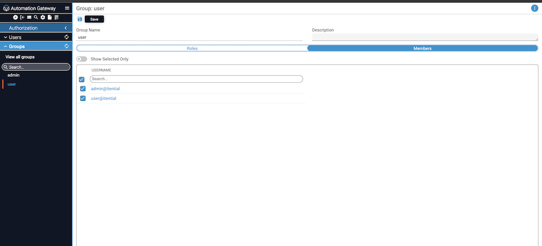 Groups are added as members to a role, and group members are listed as user members for the role. Therefore, once you have created the LDAP users and LDAP groups manually in IAG, and assigned all necessary permissions to each group, whenever an LDAP user of the same matching username logs in, that user is automatically added to the group to which the user is a member and whatever role permissions are assigned to the group.