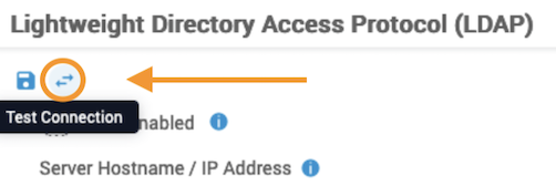 After saving the LDAP configuration, test that the BIND Username and BIND Password work as expected by using the Test Connection button next to the Save button. Set LDAP to ldap_auth_enabled: True in the properties.yml file, and then restart IAG.