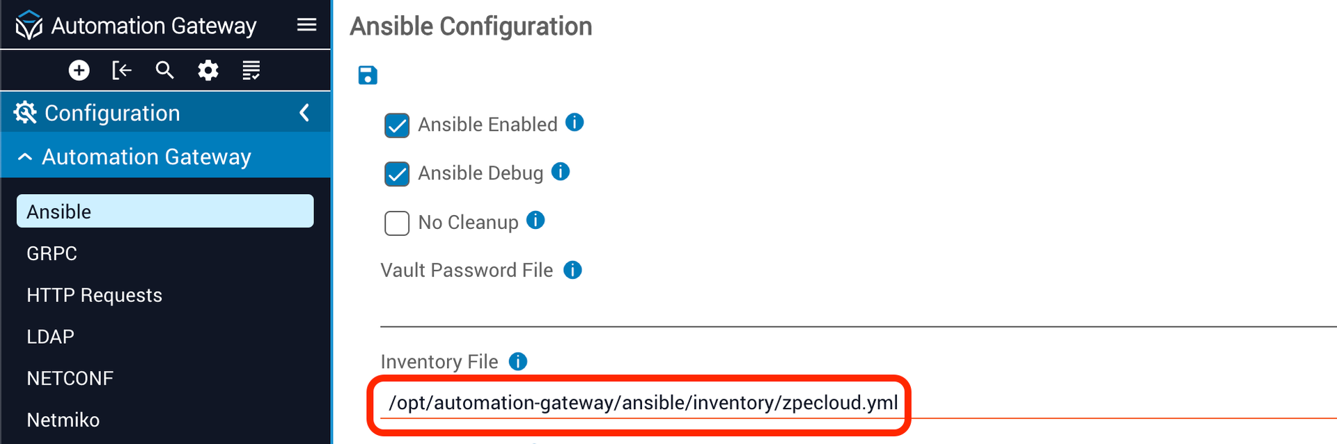 zpeclouddynamic inventory plugin by creating a file calledzpecloud.ymlin the Ansible inventory folder with the following content:- If the URL field is left unassigned,