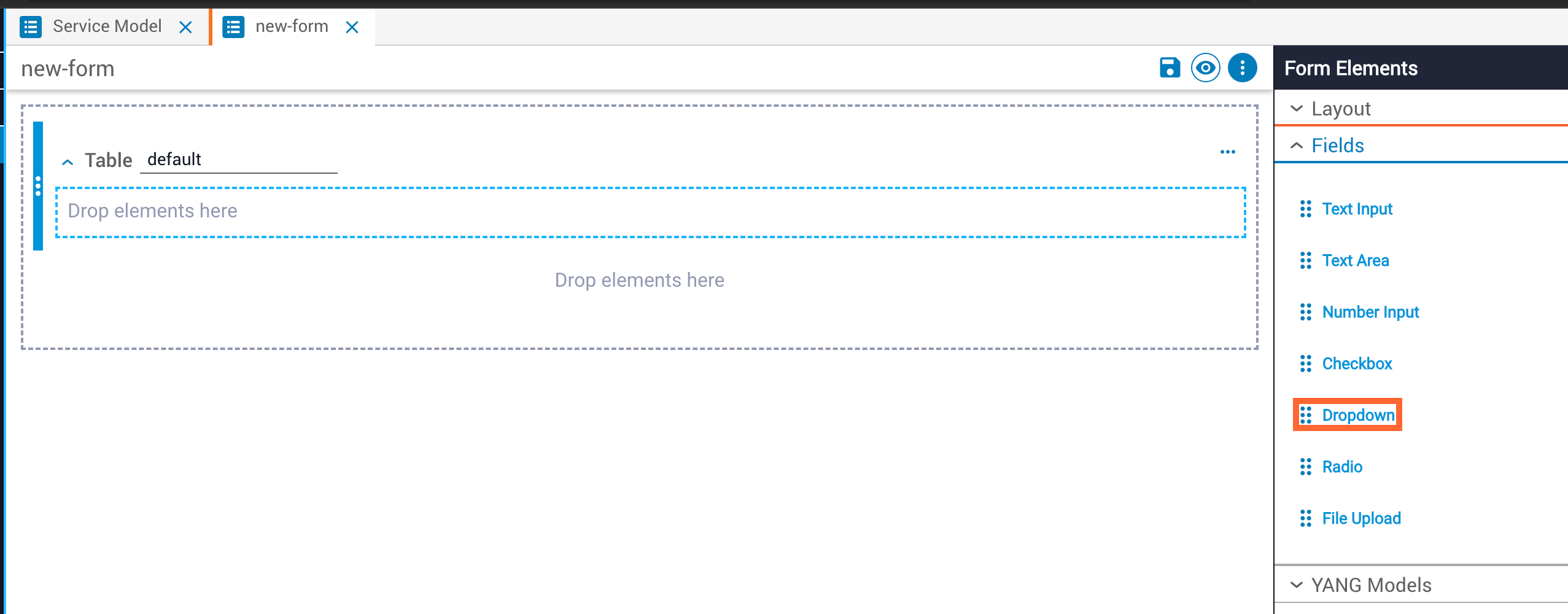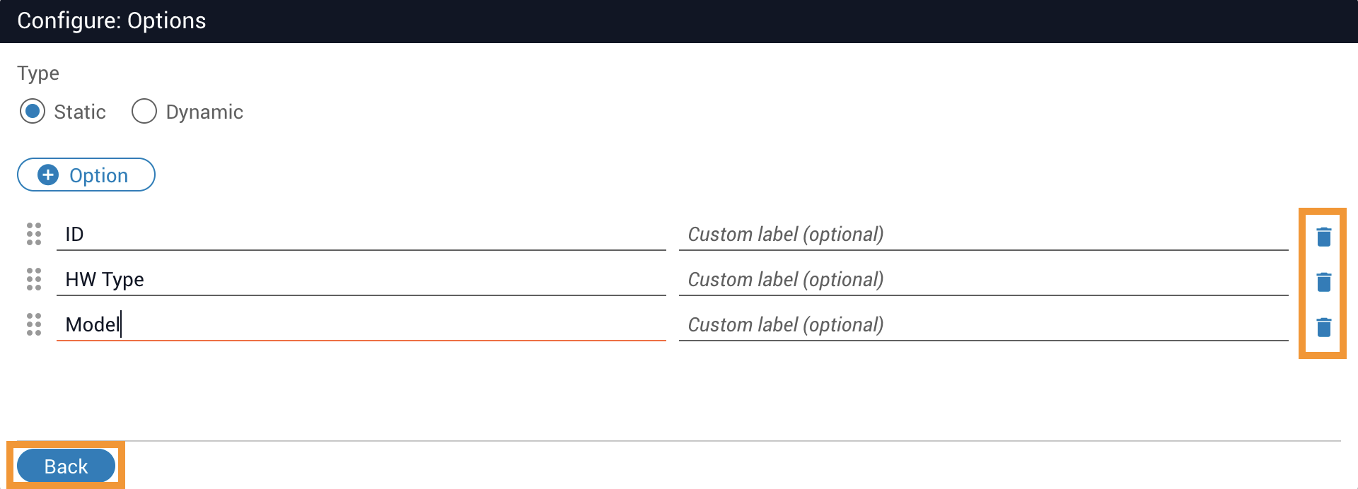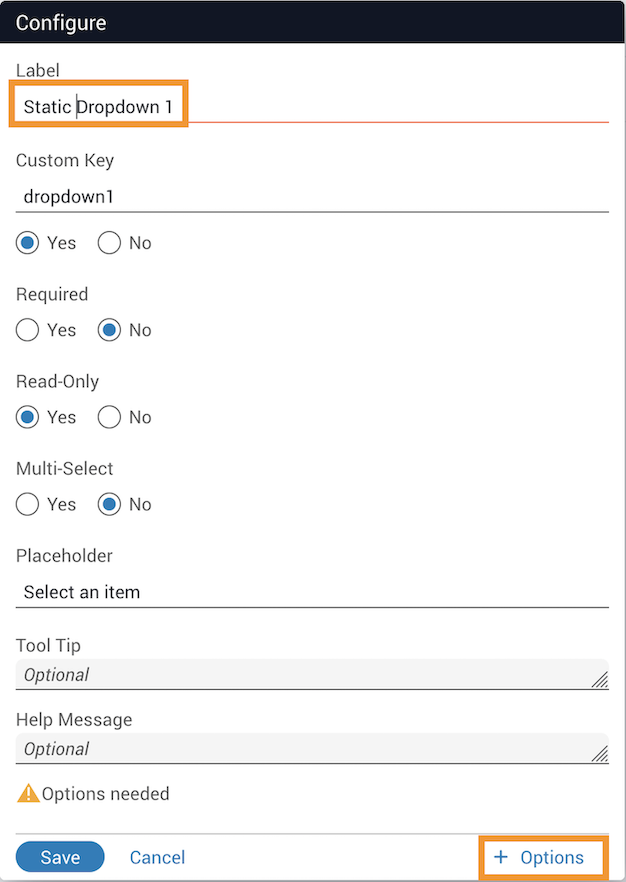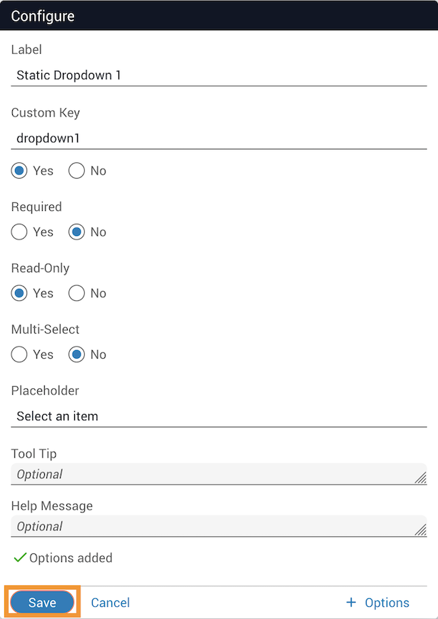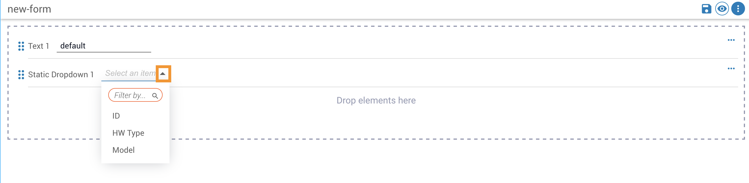 A dropdown element presents a list of options for the form operator to choose from. The options can be static (values you define at design time) or dynamic (values fetched from an API at runtime).