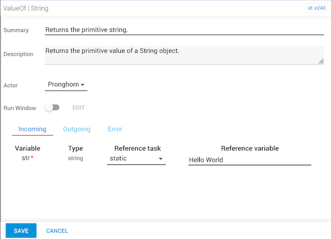 The stringValueOf task returns the primitive value of a string object as a string data type. Primitive value is data that is stored directly in the location the variable accesses.