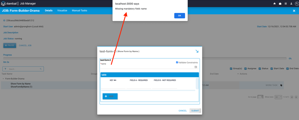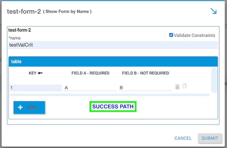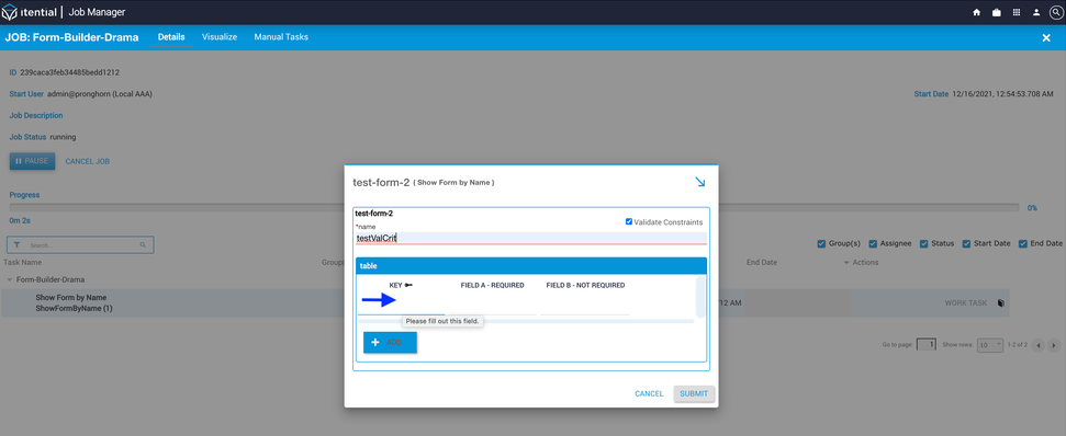 When the table key is present but required fields are empty, the form cannot be submitted: