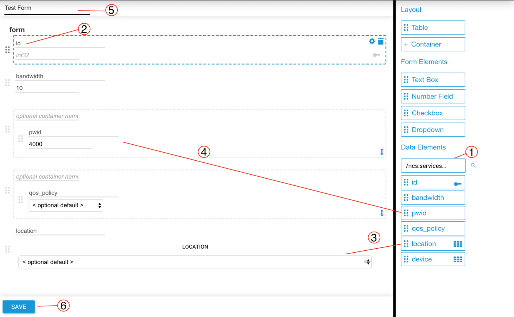 - To view device elements from a service model in Form Builder, specify where to find the YANG files. In NSO adapter version 4 and higher, configure the