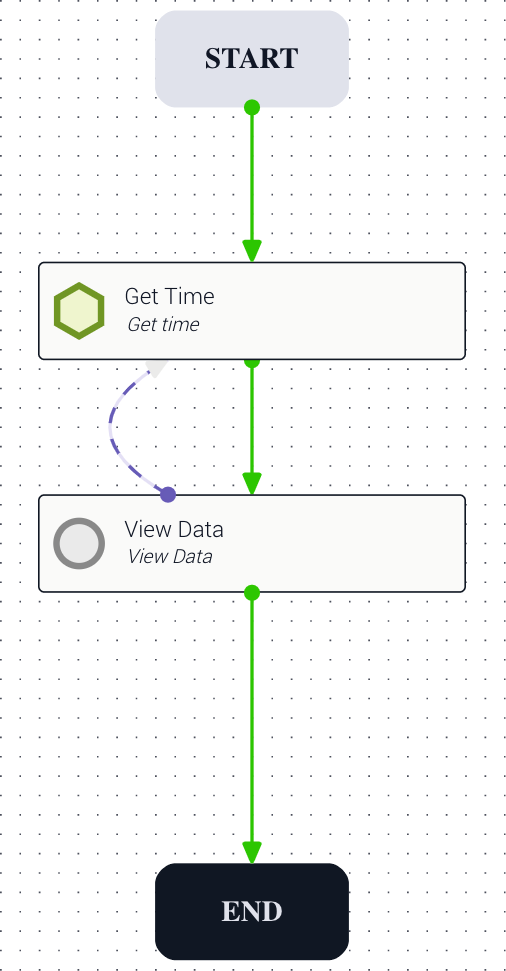 Example: A workflow uses getTime to get the current time. On success, a standard transition advances to ViewData. If the user wants to re-run the workflow, the revert failure transition on ViewData returns execution to getTime.