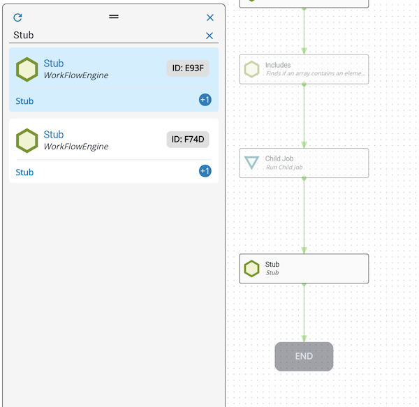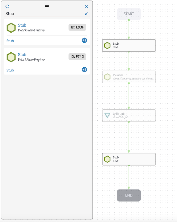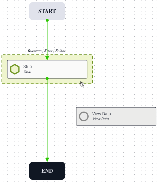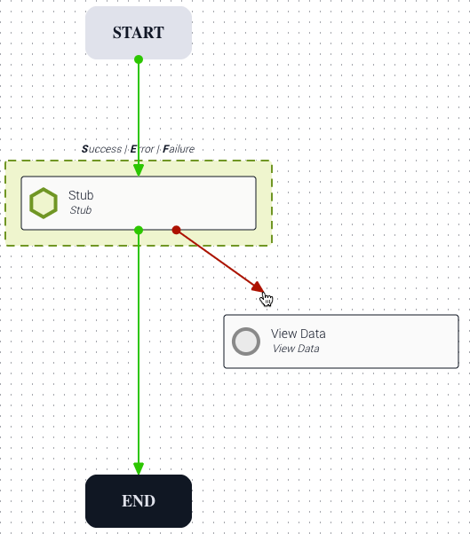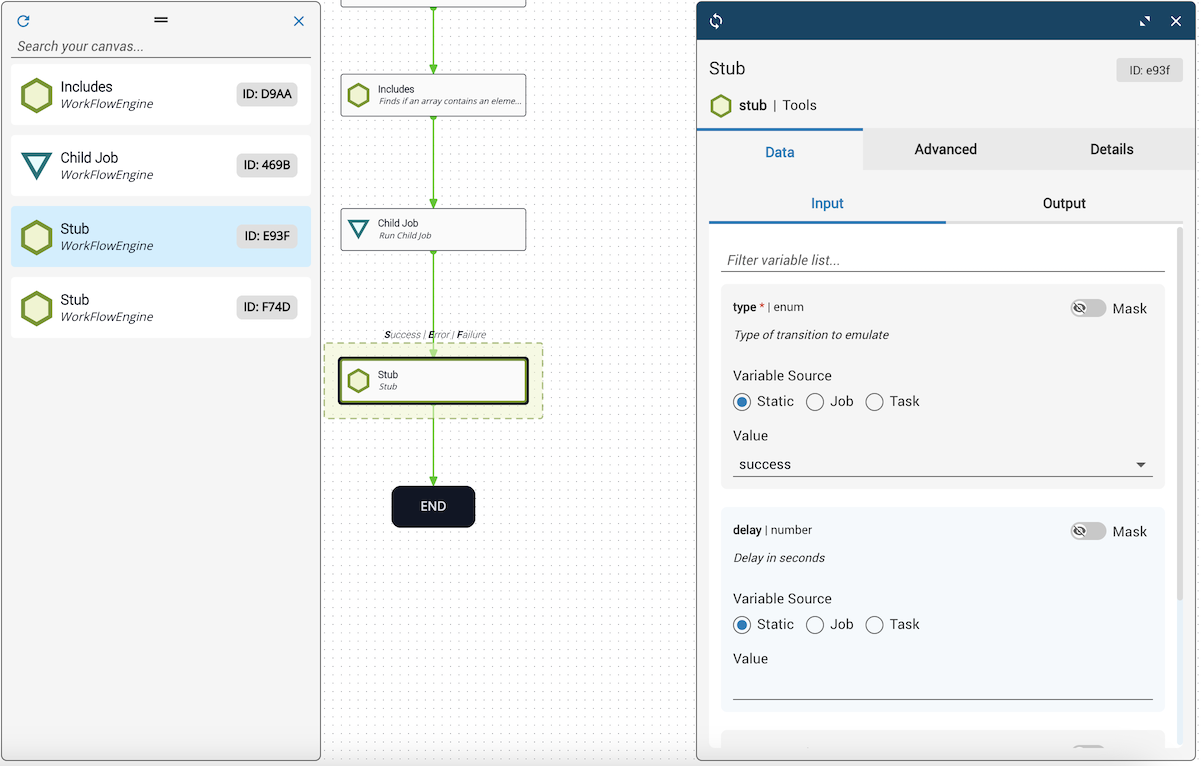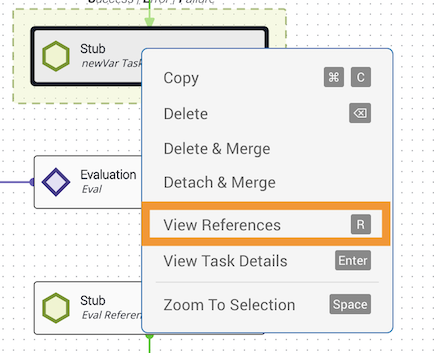 Example: Below, the Stub task is the origin task. It is pulling data from the New Variable and Modify tasks (orange). It is passing data to the Evaluation task and another Stub task (blue).