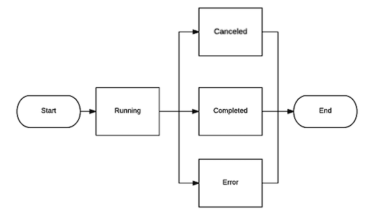Upon start, a job is set to running status. Running jobs can move into cancelled, completed, or error states.