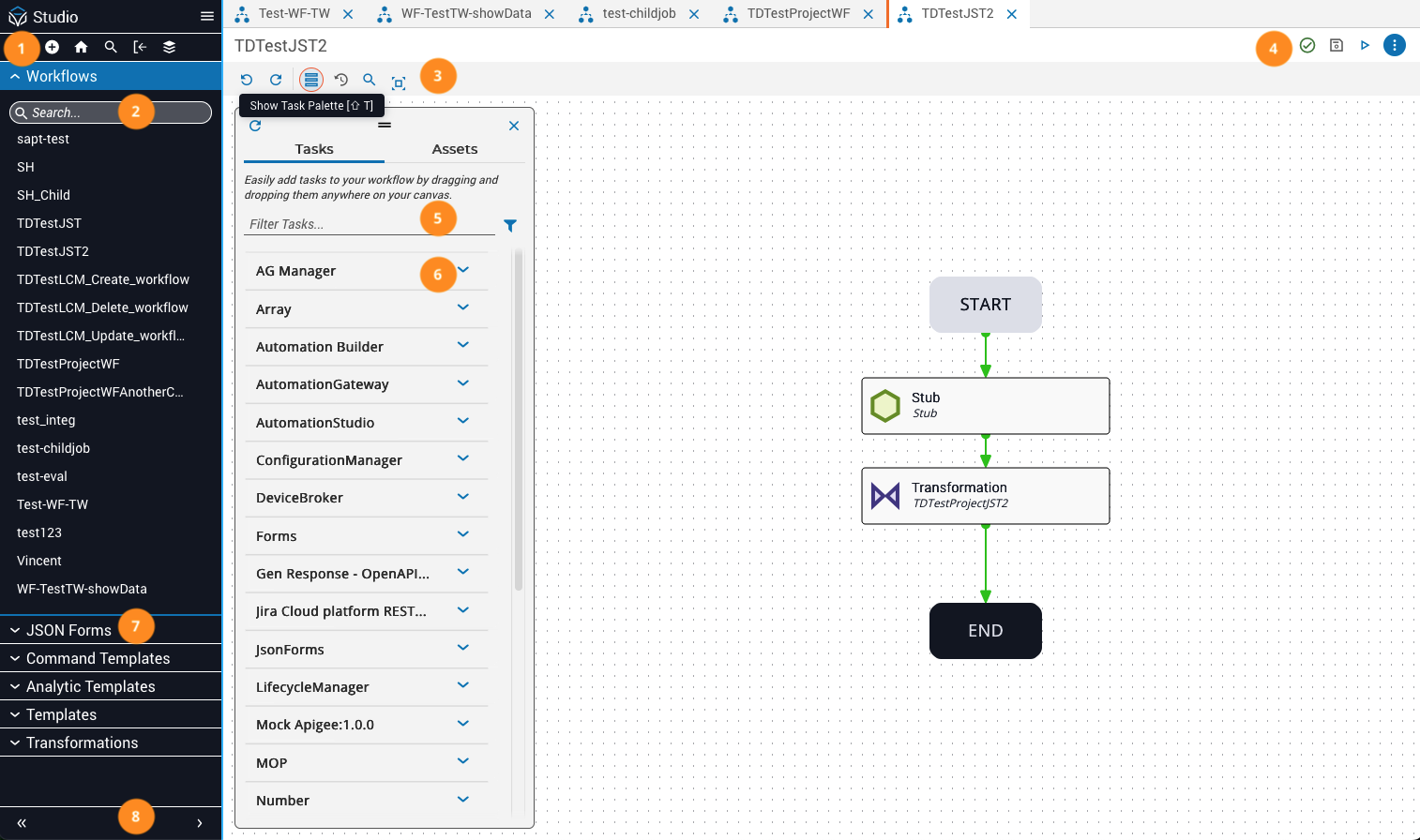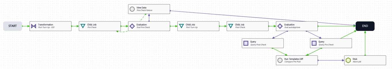 Itential Platform includes Studio for defining and building automations that can be used by applications in the system. Studio provides a clean, modern interface for arranging and connecting tasks and transitions on a canvas to create flow-based workflows.