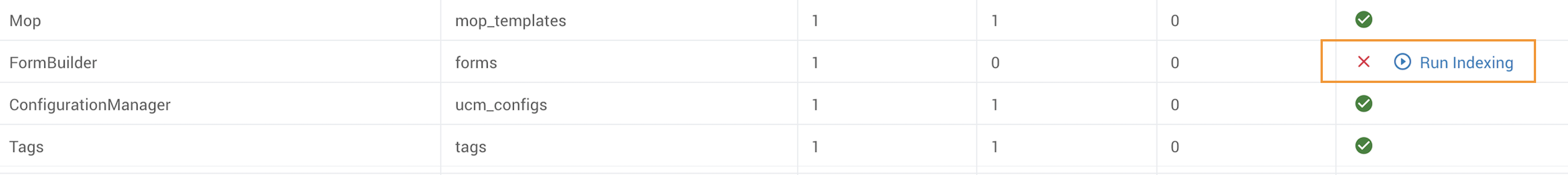 The Run Indexing button becomes available only if an index is either missing or misnamed. Running indexing may take anywhere from a couple of seconds to 30 minutes or more. When the button is pressed, a loader will show until the process is done, with the dialog polling occasionally to determine if the process is complete. If the dialog is closed, polling stops; if it is reopened, polling resumes.