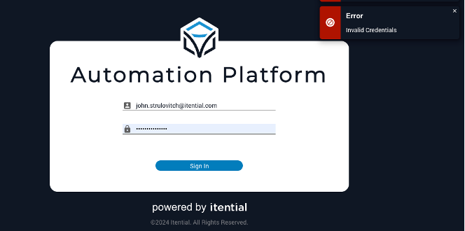 Unable to log in to Itential Platform