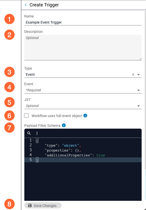 payloadkey of the event object is validated against the payload schema filter defined in the event trigger. - If the
