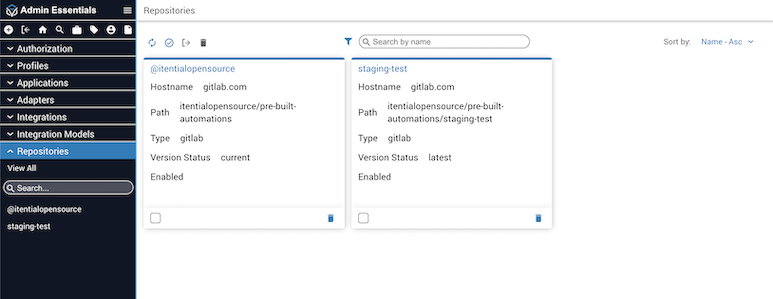 Itential Platform supports the configuration of repositories, meaning you can provide configurations to fetch pre-built automations from multiple repository locations and install and manage those pre-builts in a single Itential Platform environment.