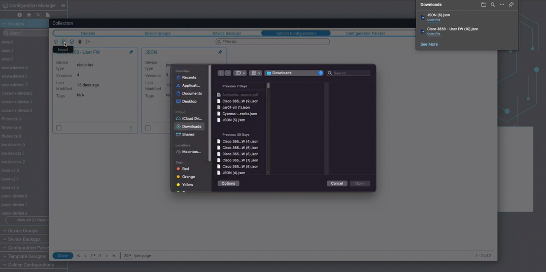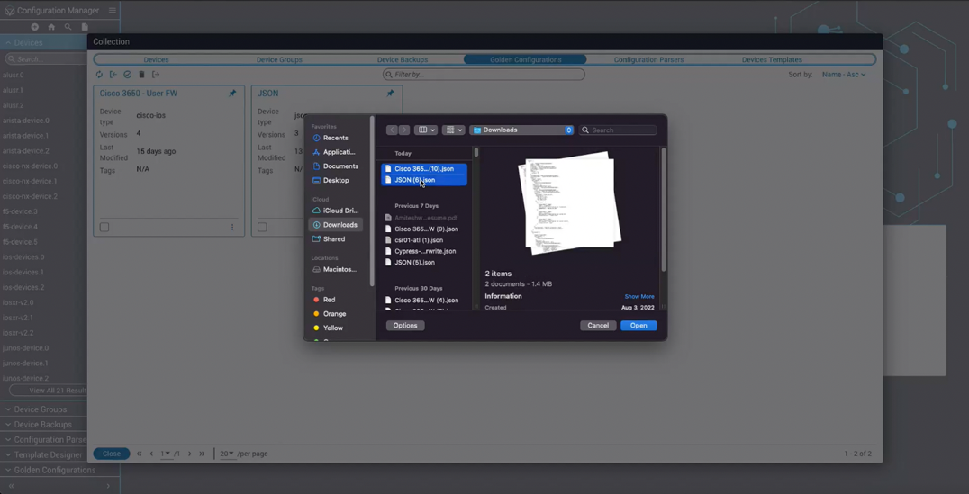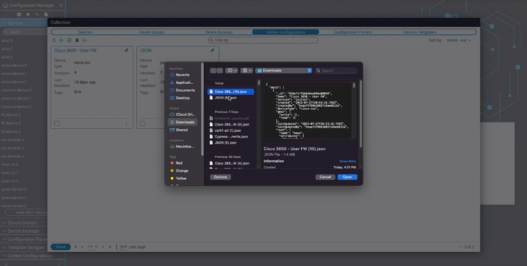 Locate and select the Golden Configurations that you want to import (represented as JSON files).