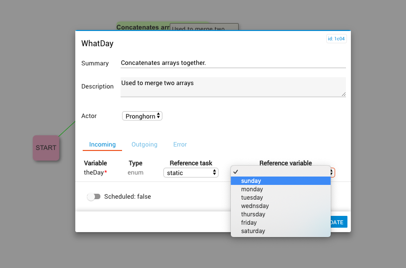 Create an enumerals array containing all valid values. In the example below, the enumerals array contains the days of the week.