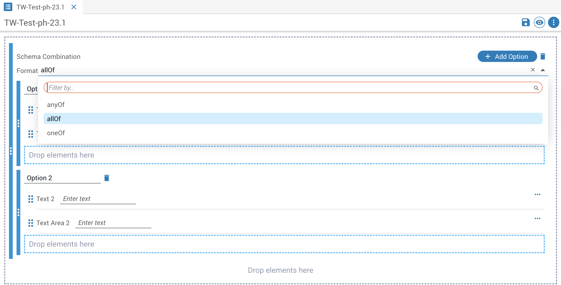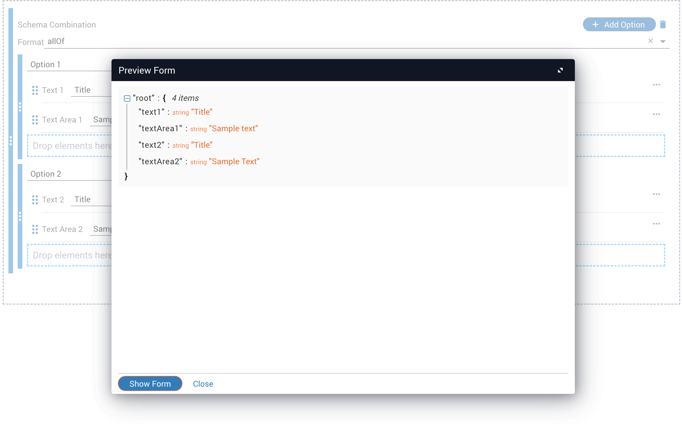 - Schema Combinations — Combine schemas and group them into selectable options.