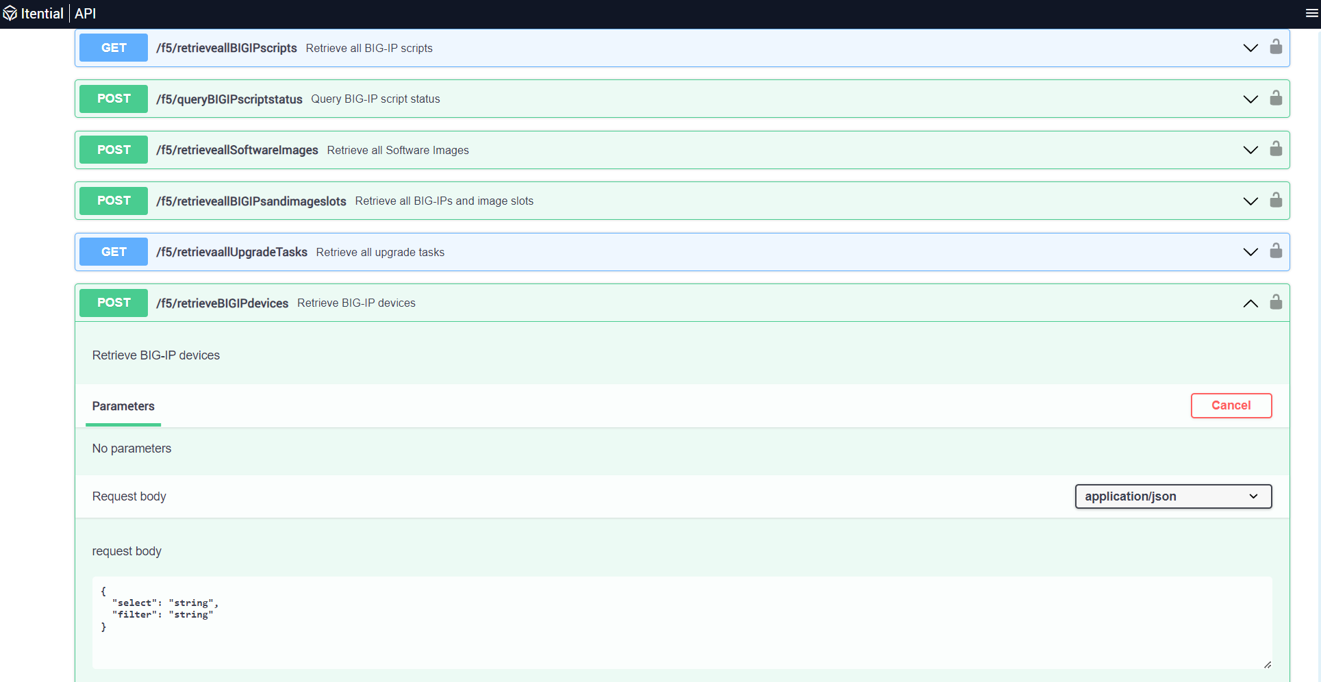At the system level this is a GET call, but as an adapter call it must be a POST request with the listed object keys in the request body. Without those parameters, the adapter call returns no output. The keys can be provided as empty strings: