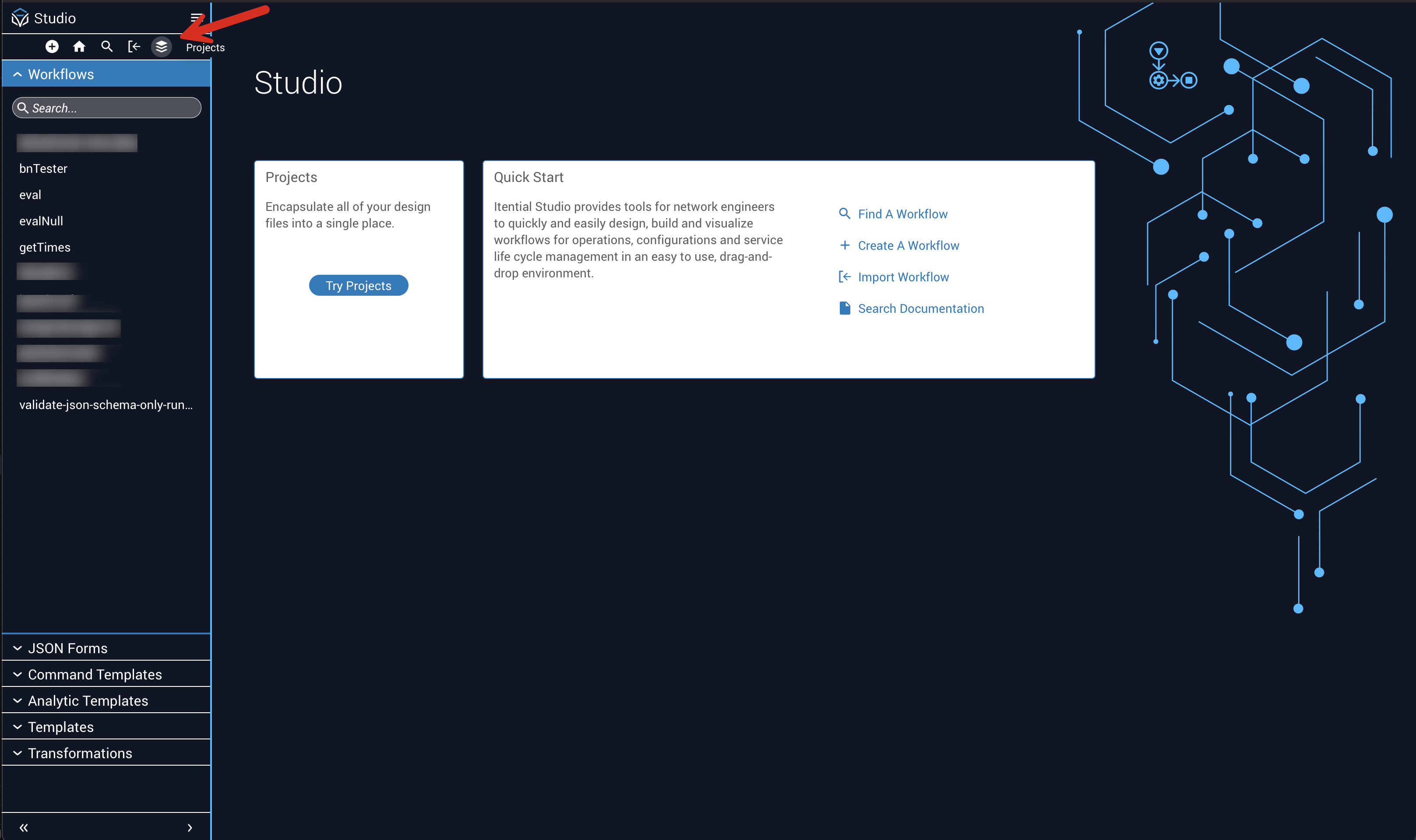 Projects is the section of Studio where you organize and edit related design‑time assets such as workflows, forms, and templates.