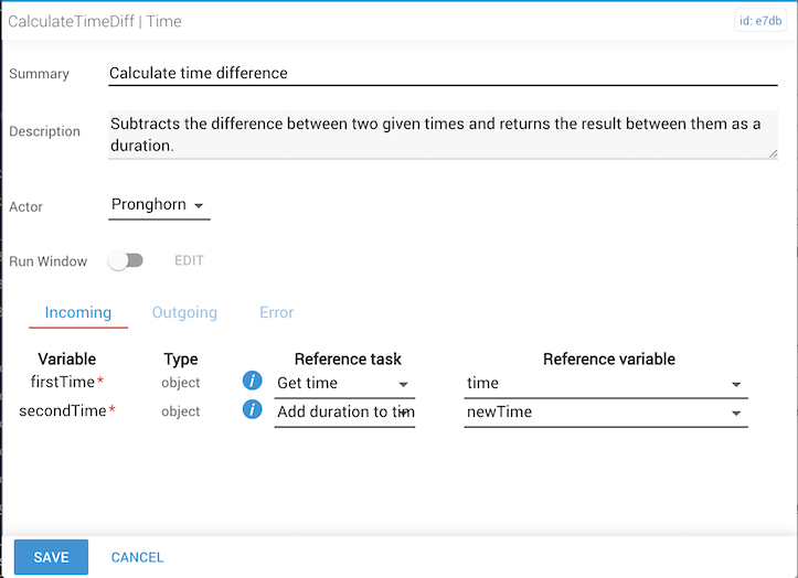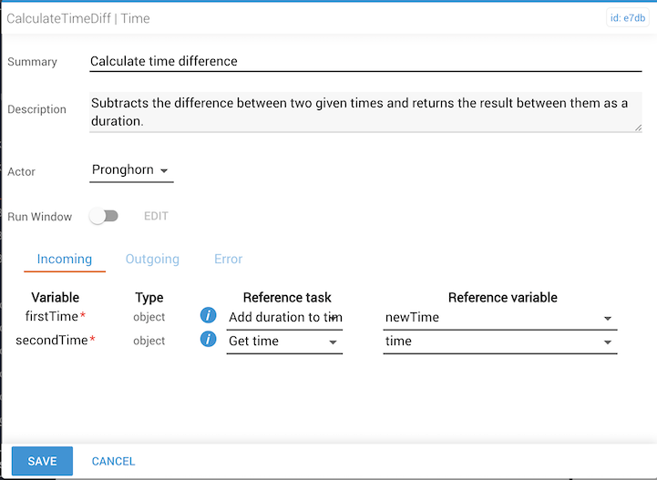 firstTimeproperty comes from the output ofaddDuration, another task in the workflow. The reference variable isnewtime. - The