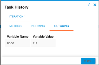 Once the workflow is executed, the code value is displayed under the Outgoing tab in Task History, accessed from Jobs in Operations Manager. The character code 111 is equal to the lowercase letter "o".