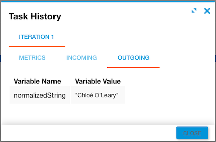 The task returns a normalizedString as output.
