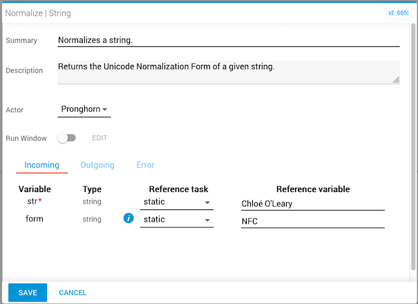 The normalize task normalizes a string, returning it in a specified Unicode normalization form: