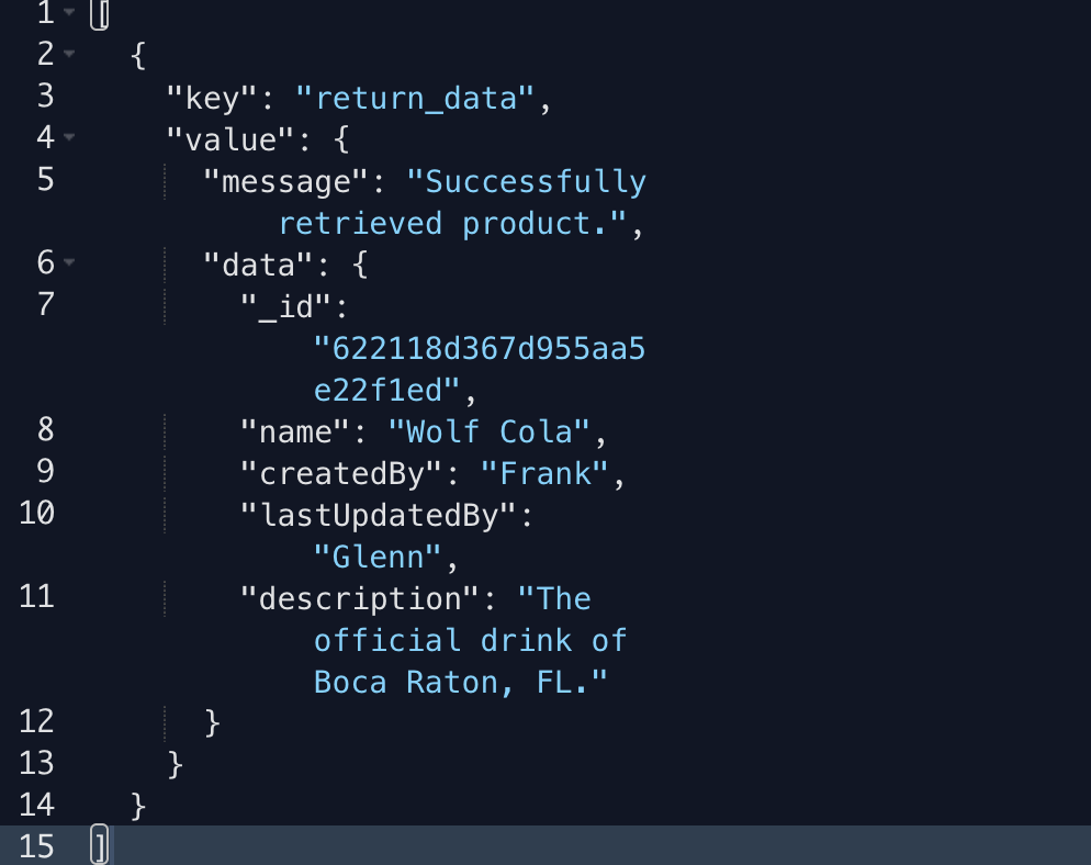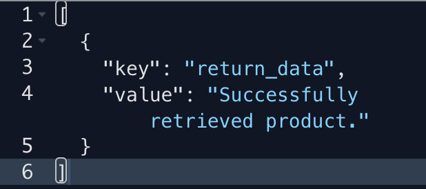 The query task extracted the value for message (“Successfully retrieved product.”). Other tasks can now reference this value in the workflow from the output of the query task (output.return_data).