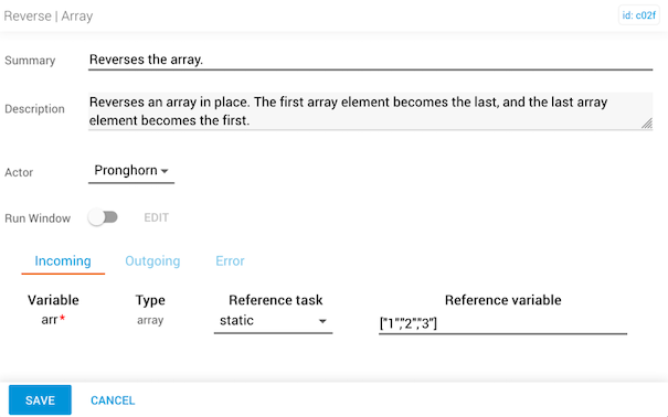 The reverse task reverses the order of the elements in an array. The first element becomes the last, and the last element becomes the first.