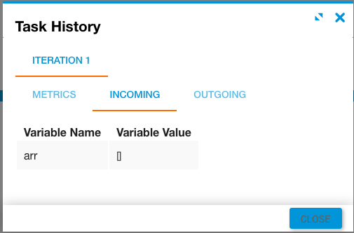 In this example, the job variables and incoming arr variable are empty.