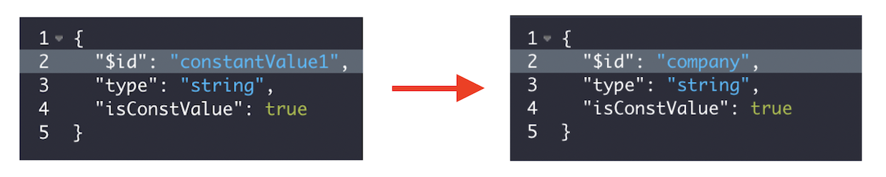 To edit a constant value, hover over it in the Incoming Schemas panel and use the same controls described in Edit, copy, or delete an incoming schema. Higher-order methods using the constant value are updated dynamically.