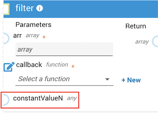 Higher-order methods in JST Designer contain an optional parameter called constantValueN. These methods iterate through an array and accept a callback function invoked on each iteration. The constantValueN parameter lets you pass external data into that callback function.