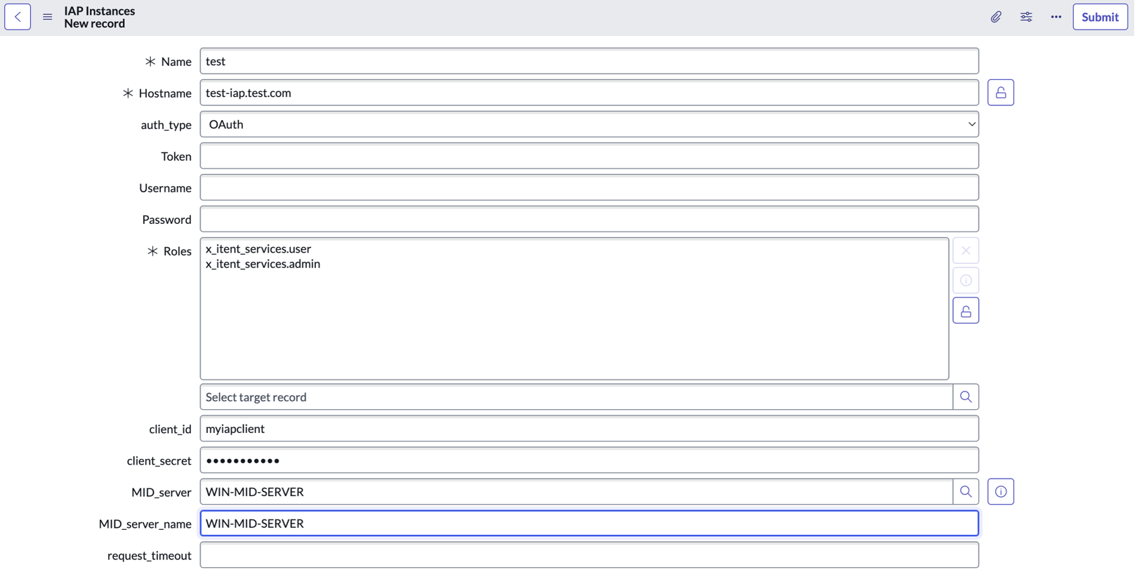 If using a MID Server to communicate with Itential Platform, provide the reference to the MID Server and the MID Server name.